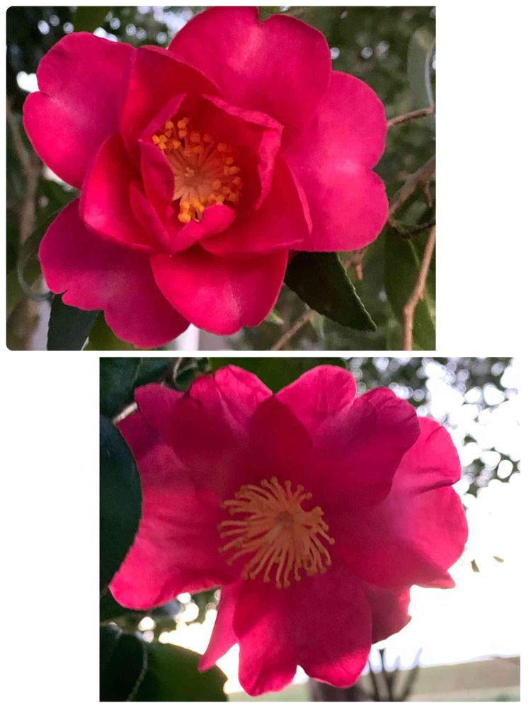 濃いピンクの八重咲きですが、開くと一重咲きの様に見えます💞
