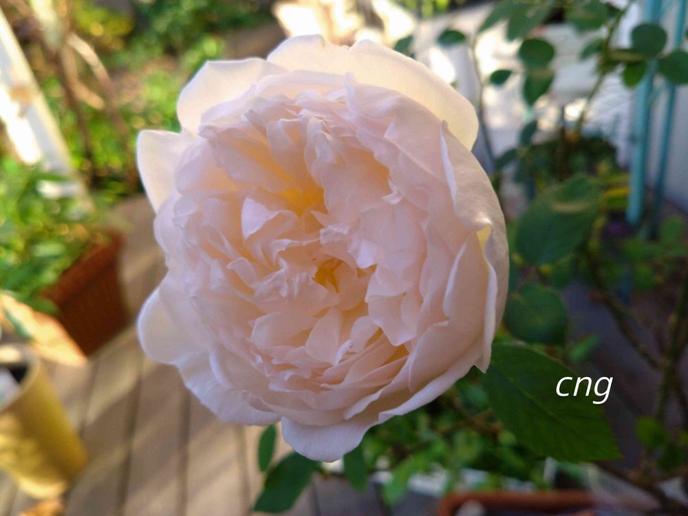 ほんのりピンクがかったグラミスキャッスルです。今年は、花つきがイマイチでした。株はしっかりしてそうなので来年に期待します。