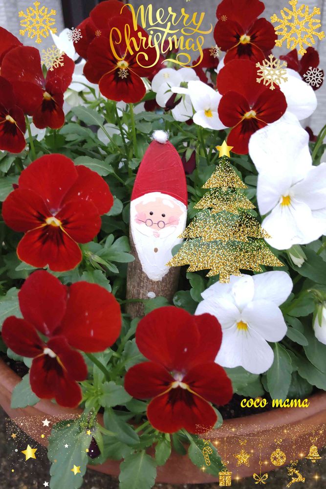 赤白のビオラにサンタさんで12月のスタートだよ🎅❤️🤍