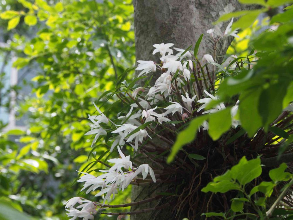 大きな樹に寄り添って、楚々と咲いていました!蘭の一種でしょうか?