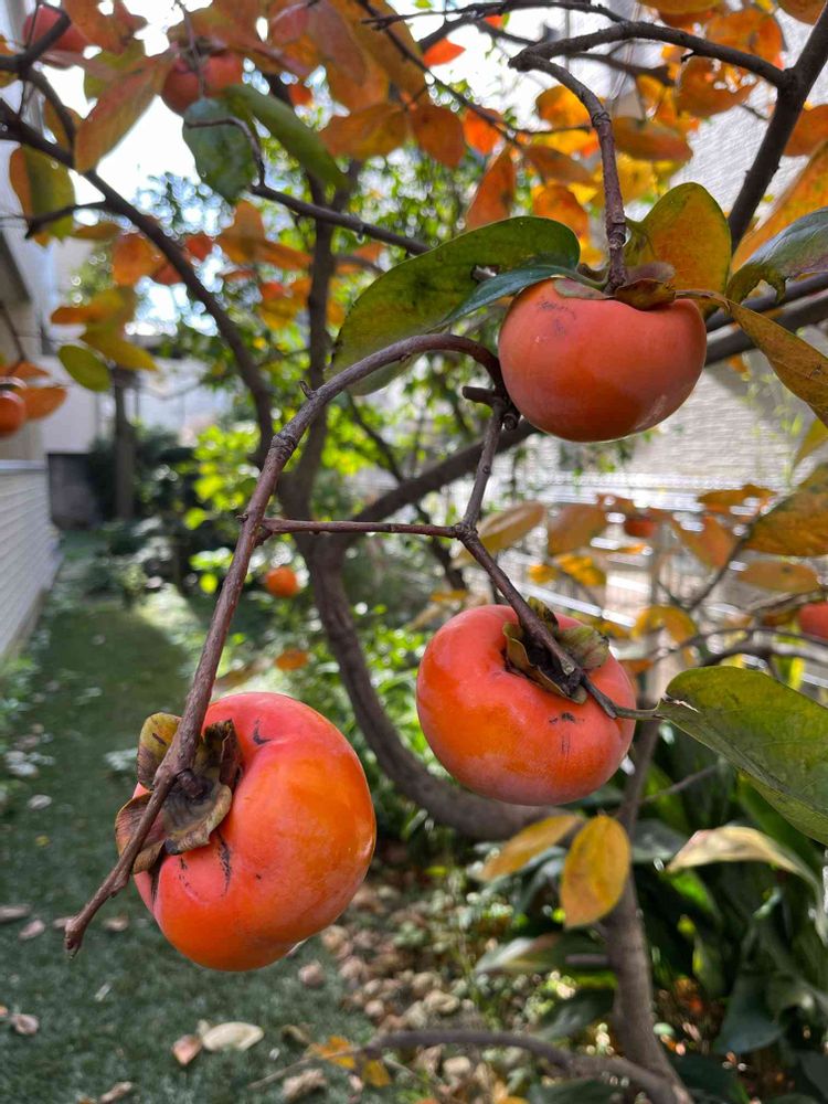 裏庭の柿がすっかりイイ色になっていたので収穫しました😊