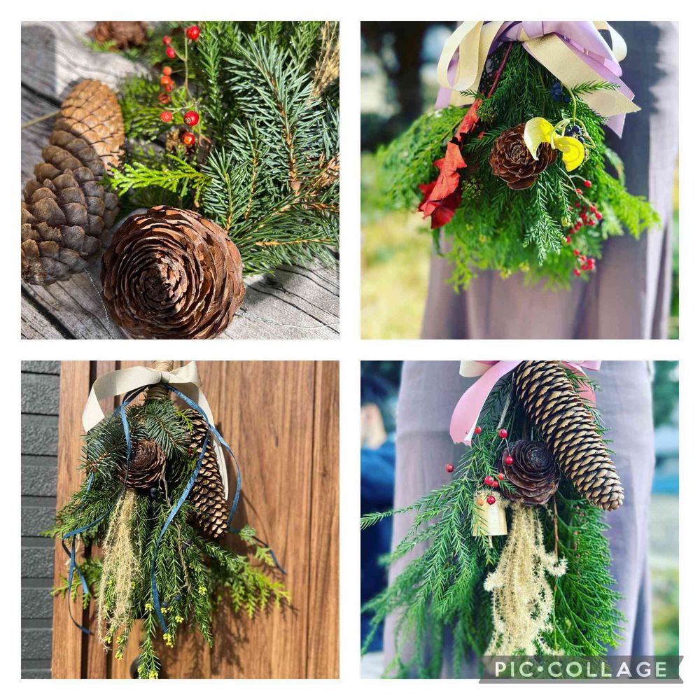 昨日はお隣りさんと一緒にクリスマススワッグを作りました✨