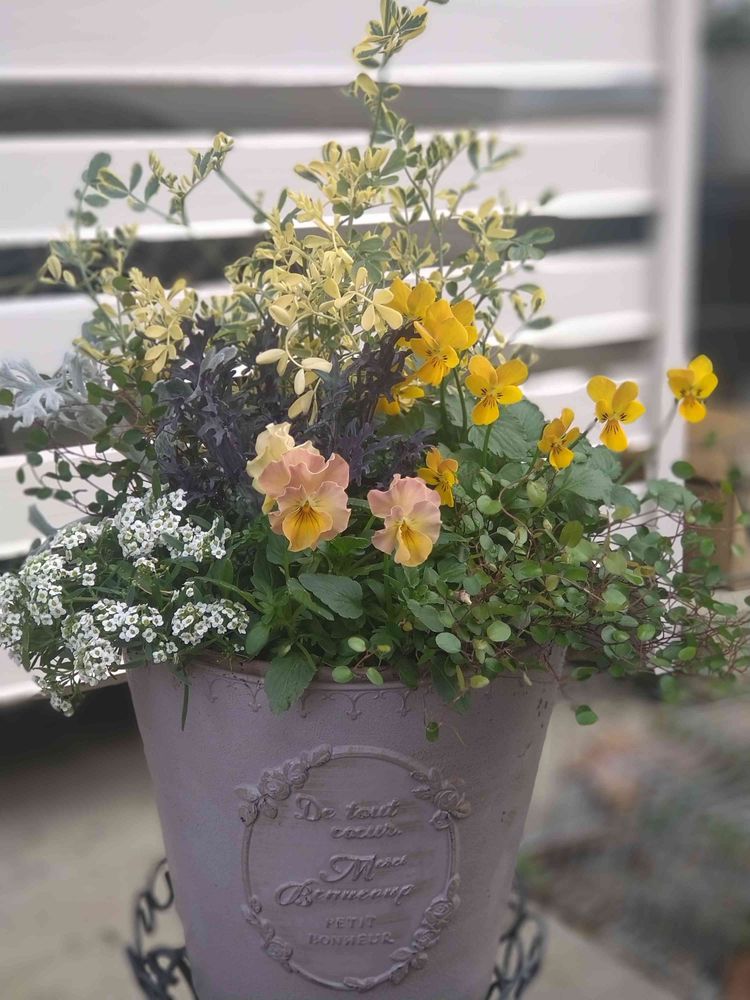 寒いので、暖色系の寄せ植えにしてみました💚💛💚💛