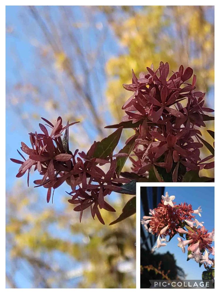 花友さんのpicを拝見して アベリアの萼が紅く紅葉して お花のように見えることを教わり 私も探してみました🤗