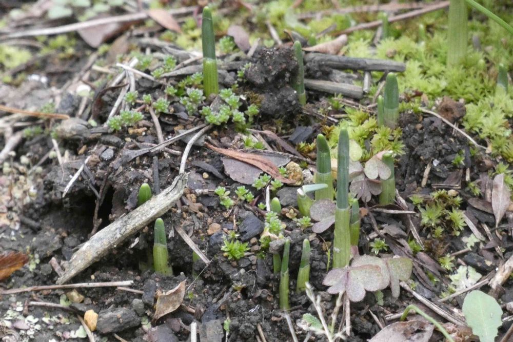 そんな中、土を持ち上げ小さな芽🌱たちが、出て来ました。3月下旬の頃、花を咲かせますが、ゆっくり見守ることにしましょう😉