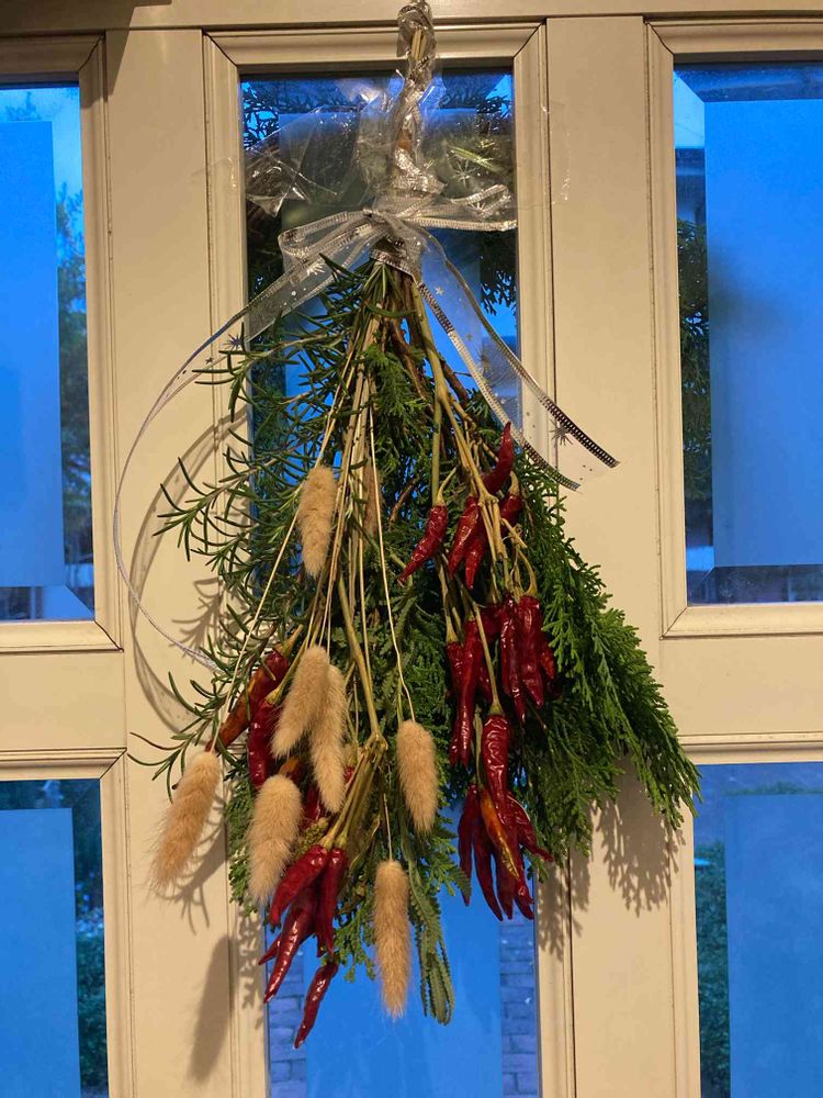 スワッグ束ねてリボンかけて下げただけなのに、なんかいい感じに見えてうれしい😊