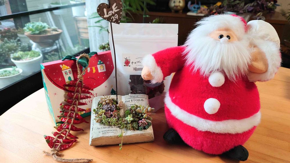 多肉の寄せ植えを届けてくれるサンタさん良いな〜🎅🎄book鉢の寄せ植え可愛い💕