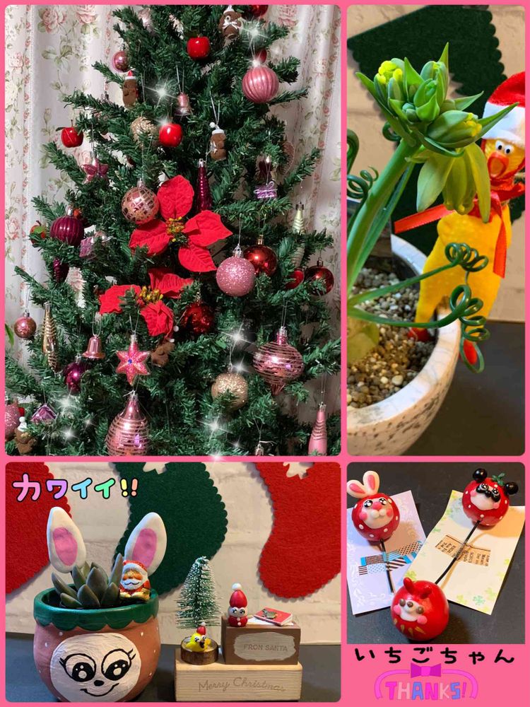ヒャ〜😍💘💘💘開けたらkawaii🐰が目に飛び込んできたよ🤭🤭🤭👍 いちご🍓ちゃんピックウサ耳ナイスだね~🎶 ツリー🎄も飾って後はサンタ🎅さん待ちだ〜😁💞🎁良かったネ