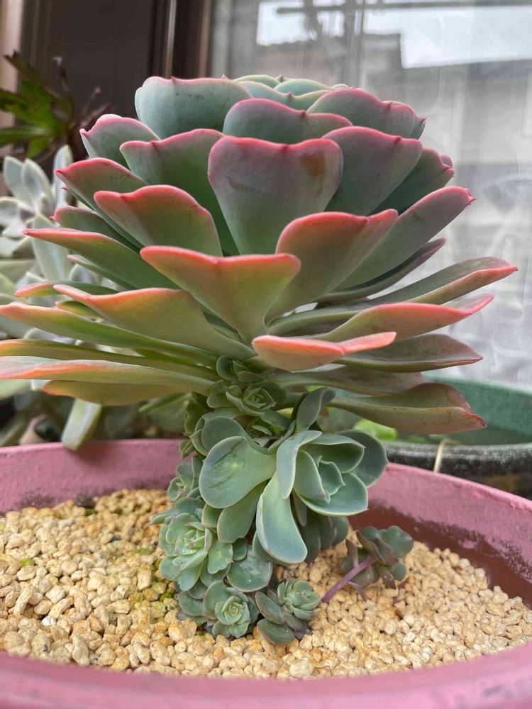 増やしたいなら子株が4、5cmになったら外してあげてもいいし、頭をカットして子株だけの群生にしてもいいですよね〜