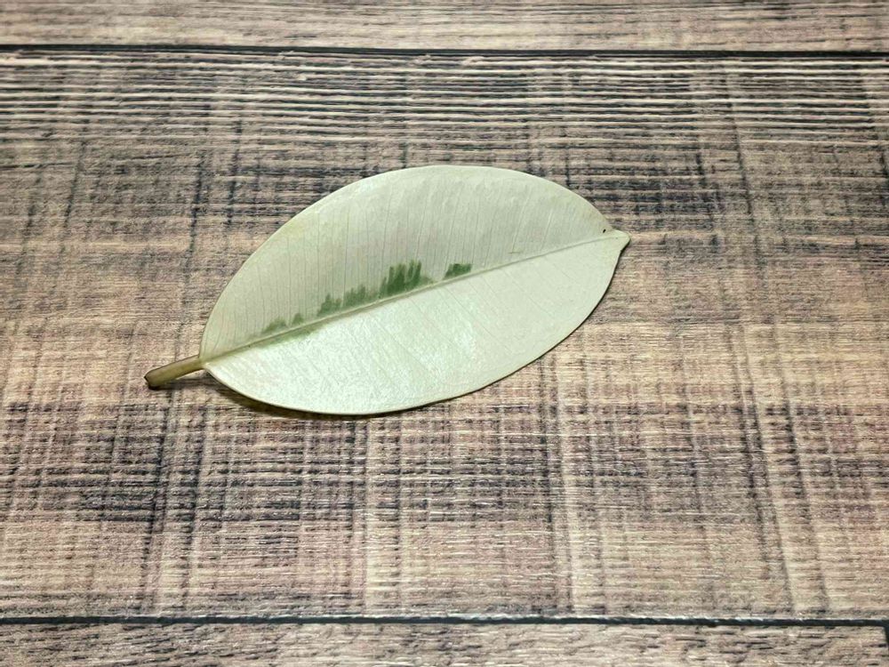 この1枚のほぼ真っ白の葉が決め手でお迎えしたのに、ある日ぱらっと落ちてしまっていました。