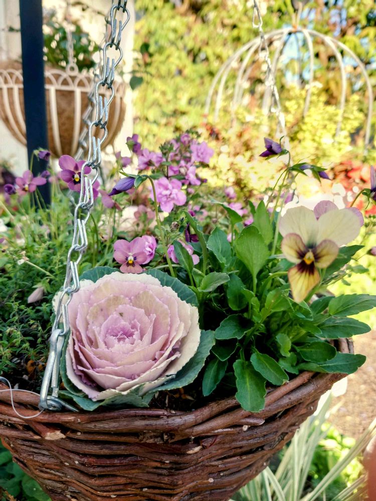 ☆せん☆さんの小さな庭,吊り下げ,葉牡丹の寄せ植えの投稿画像