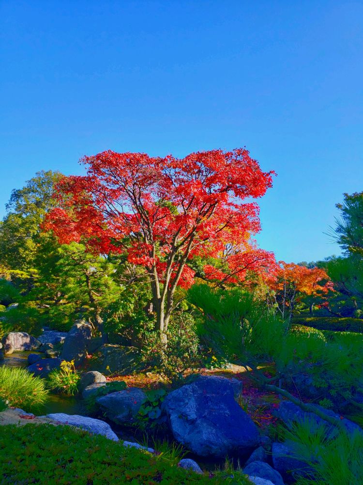 青空に映えて真っ赤に紅葉してて綺麗でした✨