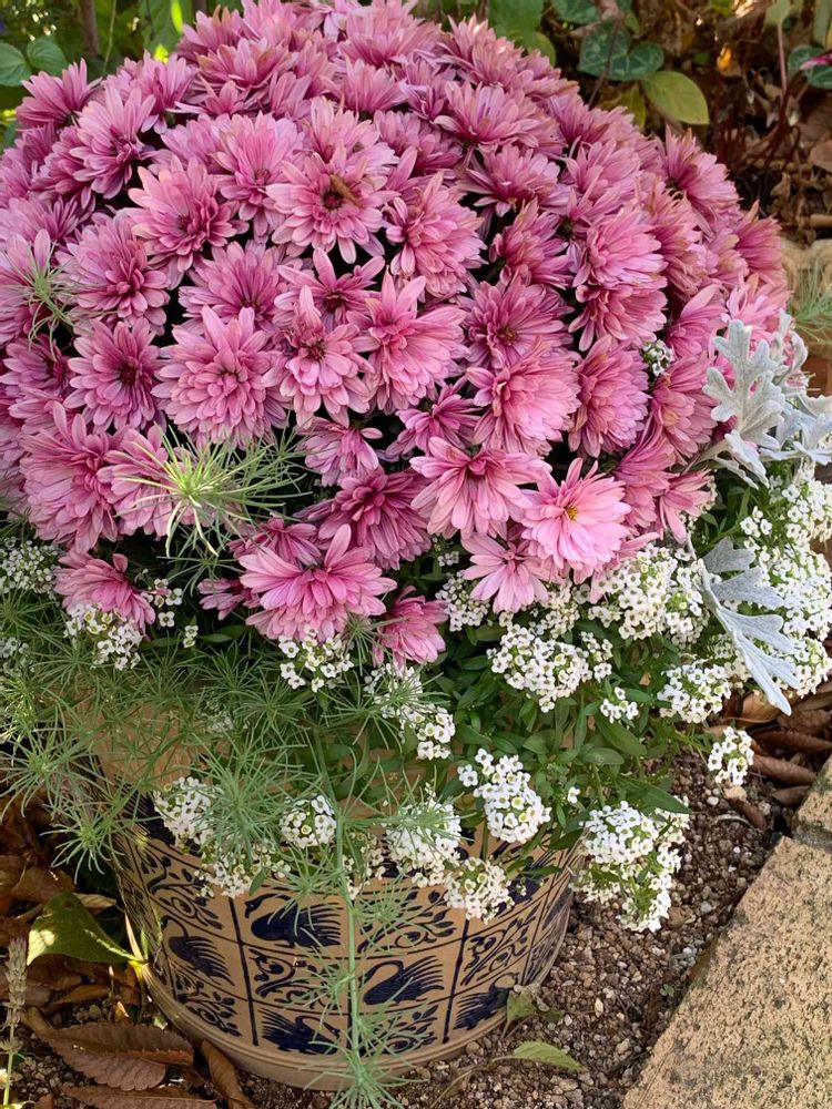 ピンクの小菊さんとアリッサムさんの寄せ植え💕まるでブーケのようで、かわいかったです💕小菊さんのイメージが変わりました💕丸く集める技にキュン💘
