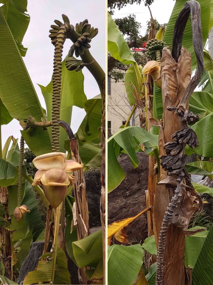 まるで恐竜🦕の化石のように変身を遂げたバナナ🍌の木👍これもまた黒バナナで今しか見られない姿ですなヾ(∀︎≦︎`笑)〃