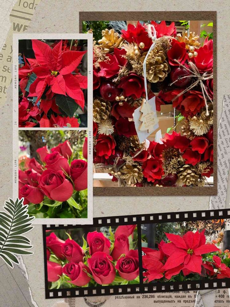 お花屋さんはCHRISTMASカラーで彩りを見せてました。