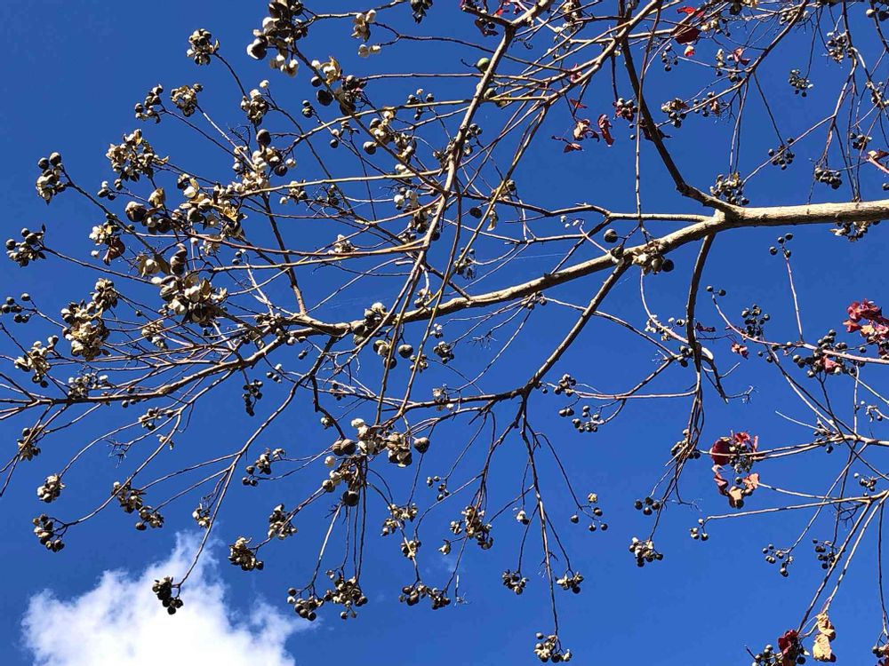 青空には鮮やかなお花も、地味〜な枝でもなんでも映えますよねー