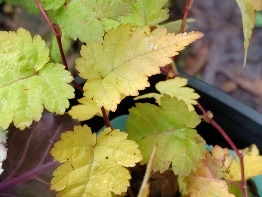 寄せ植え用に買っておいたバラ科のウツギが黄葉して来ました。
