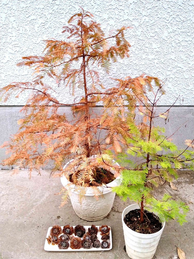 種から育てた鉢植えのメタセコイアって、おもしろいでしょう。