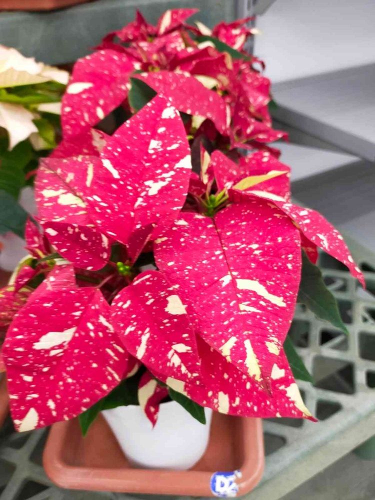赤い葉にゴールドの斑が入ったポインセチア、素敵ですね💐