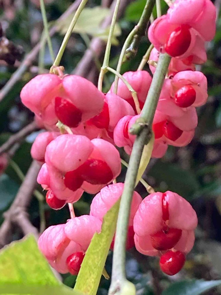 はみ出した真っ赤な種子が可愛い真弓さんですが、有毒植物誤食注意です⚠️