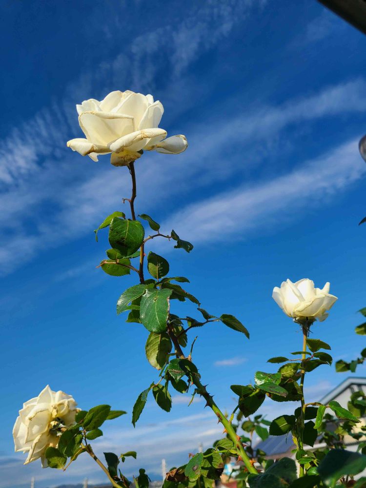 すっかり寒くなって来たけど、青空を仰ぐようにビブラマリエが咲いていましたよ🎶