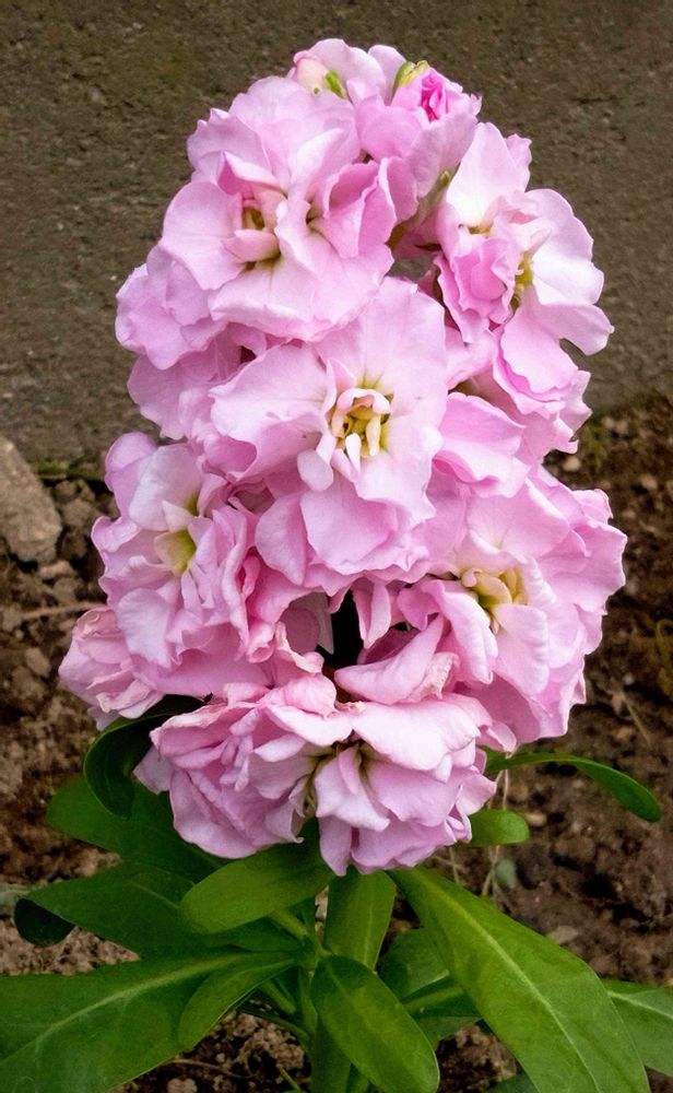 通りすがりの、とあるマンションの花壇に咲いていました、ストックの花☺️