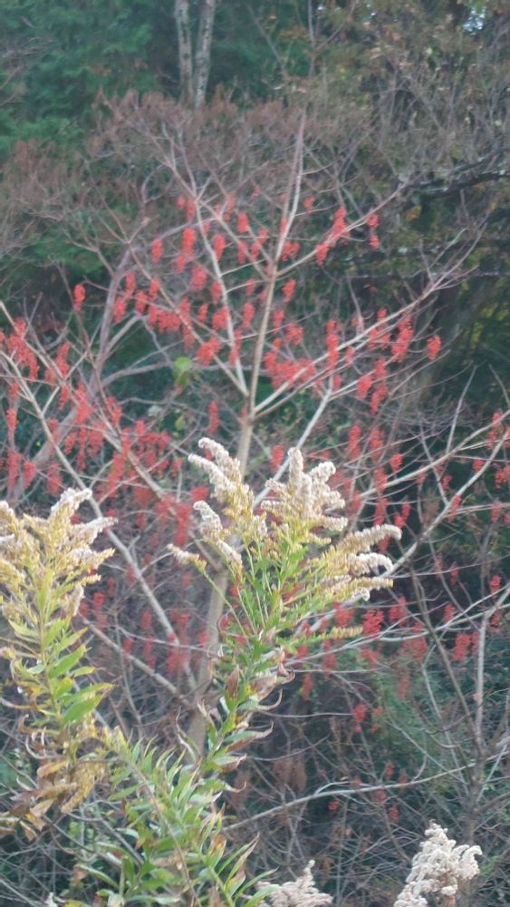 ぶどう🍇の、房のように 赤い実が ぶら下がって 素敵な木🌲です。