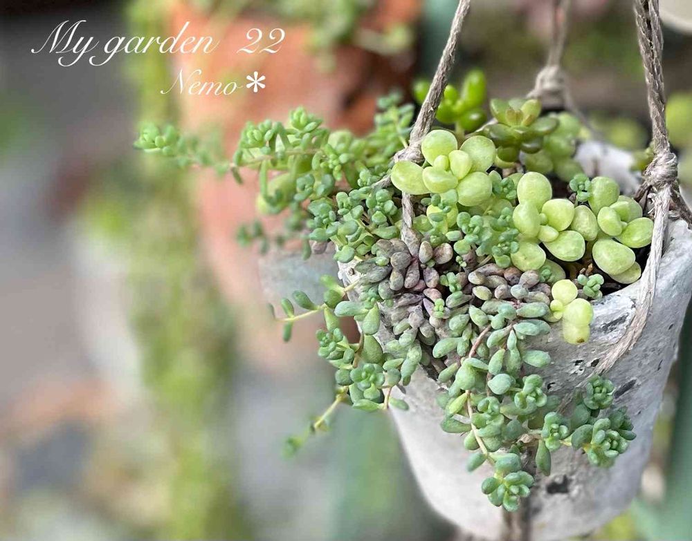 セダムが垂れ下がり、メンドーザエは少なくなりましたがグリーンが綺麗です💕