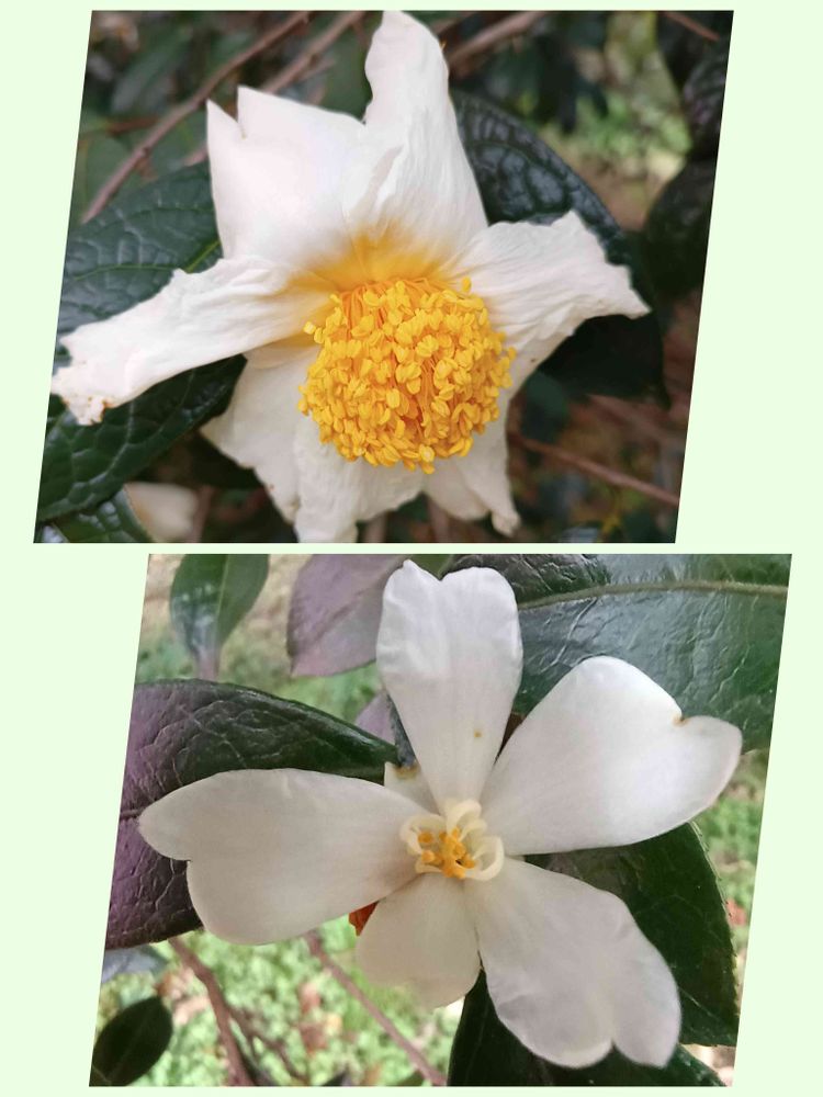 サザンカがツバキとの違いが分かりやすいです!🌼💛真ん中かわいいです!