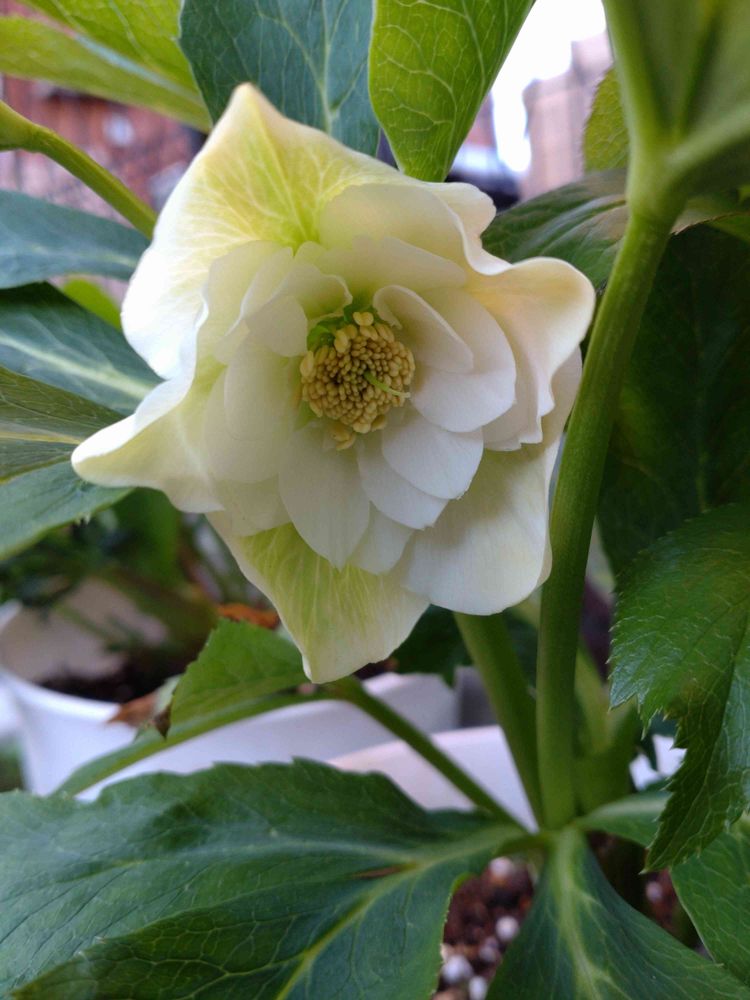 お隣の二階建てアパートが建て替えられて、少し離れ、日当たりが良くなって、クリスマスローズには過酷なのです。_| ̄|○