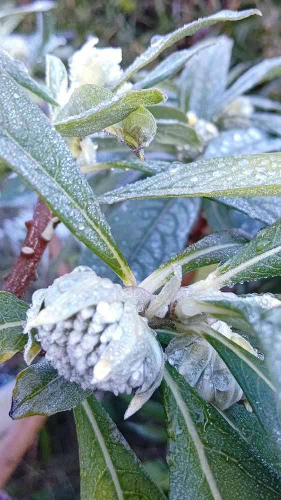 雨上がりのシルバー色の蕾がとても、綺麗です