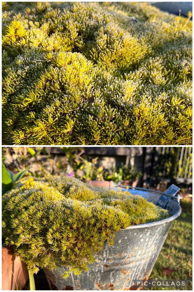 バケツのアイリッシュモスに霜❄︎❄︎❄︎