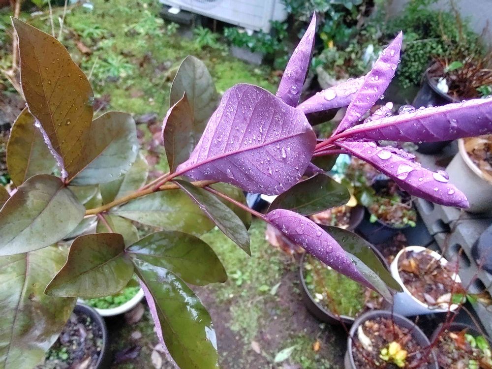 葉の裏が紫でとてもキレイですが、寒さに少し弱い……❄の当たらない軒下にソロソロ引っ越しですね。
