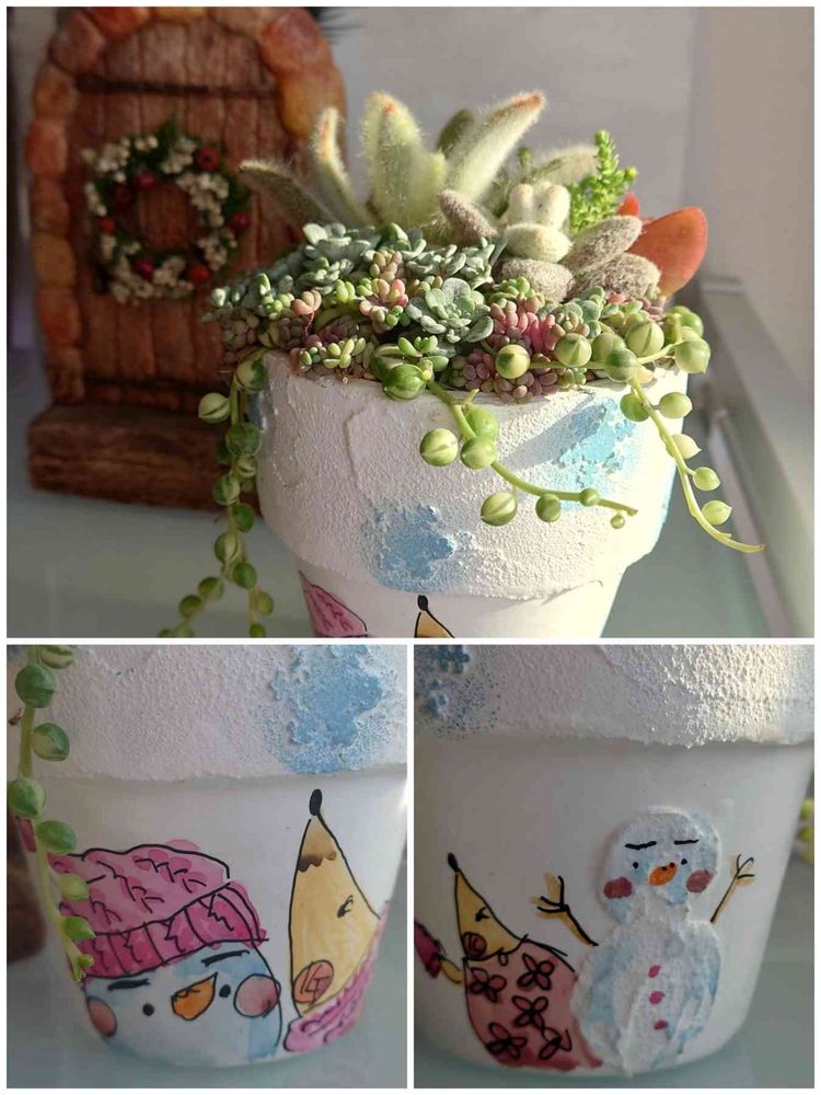 雪だるまが描かれていたので福兎耳の🌵雪だるま🌵を植えてみました