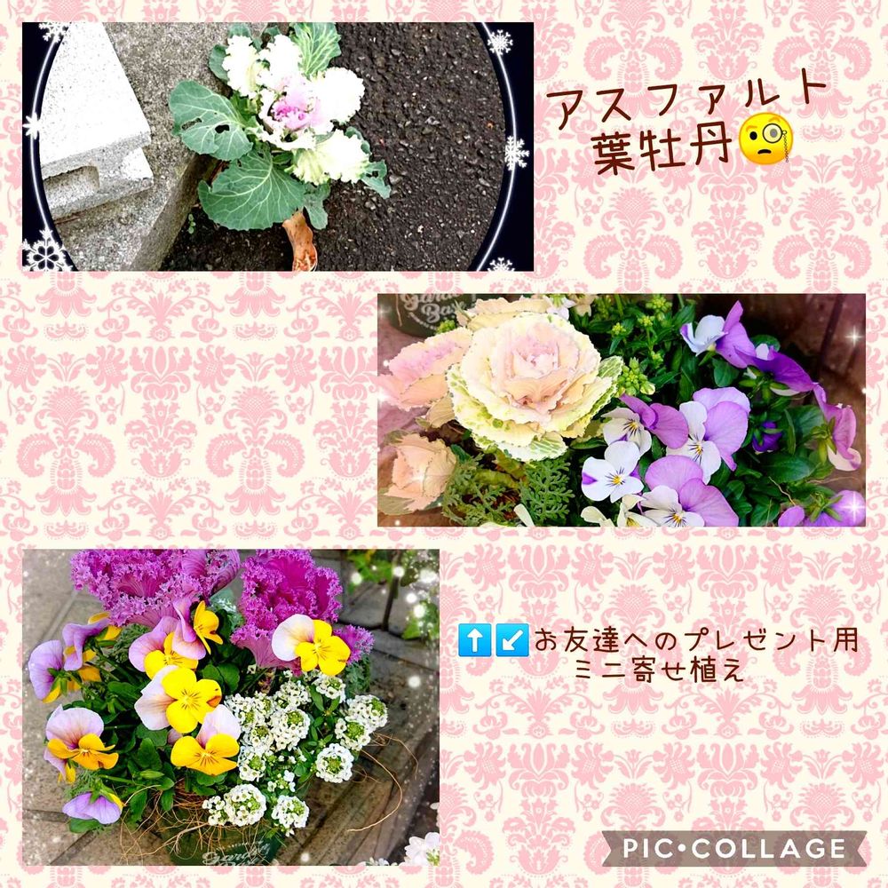 小さな庭,葉牡丹の寄せ植え,アスファルトの隙間からの投稿画像