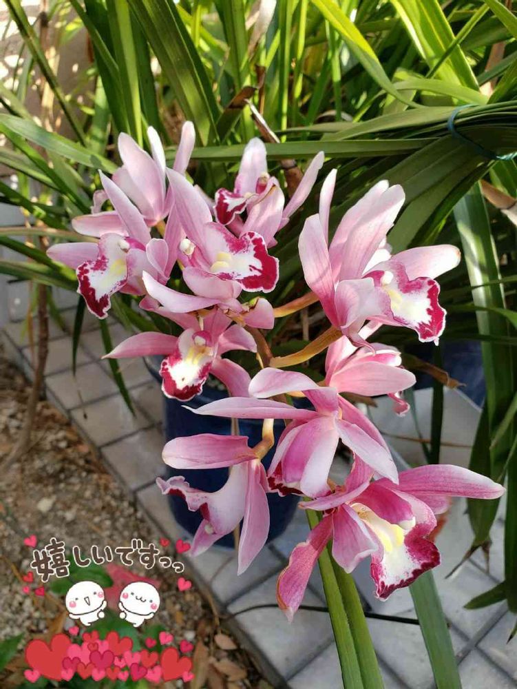 今日のお花、シンビジゥムです。😆🎵🎵今年3月に我が家に咲いた花でーす🤭✌️