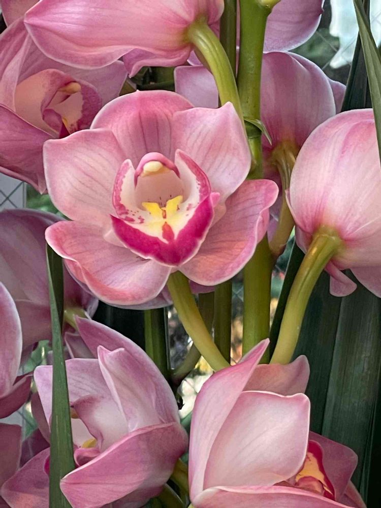 いつものパン屋さんで高らかに歌うシンビジウム🎶
