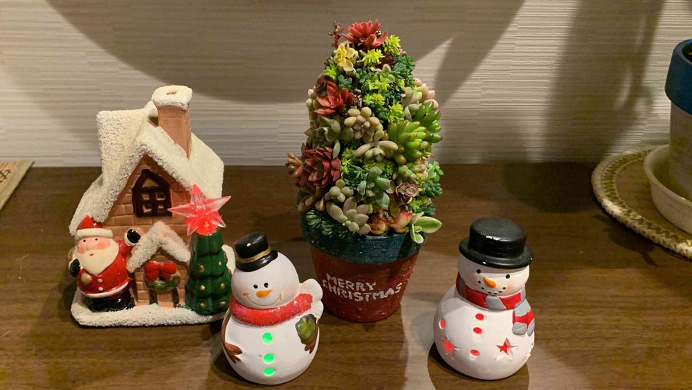 Instagram、Facebookには投稿済みですがクリスマスに向け作りました多肉ツリーです。