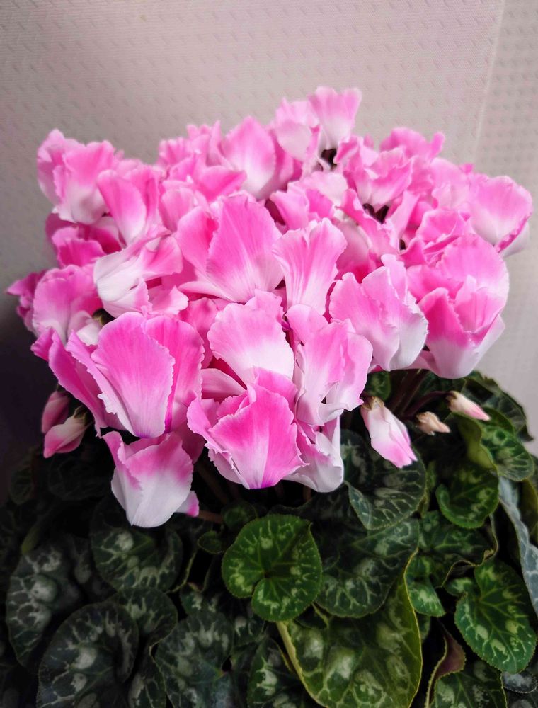 桃色と白いシクラメン・プルマージュの花、優しいピンクが可愛いです💗🌿