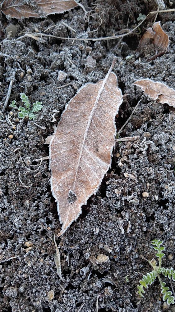 昨日の朝の庭🍁凍ってました❄️