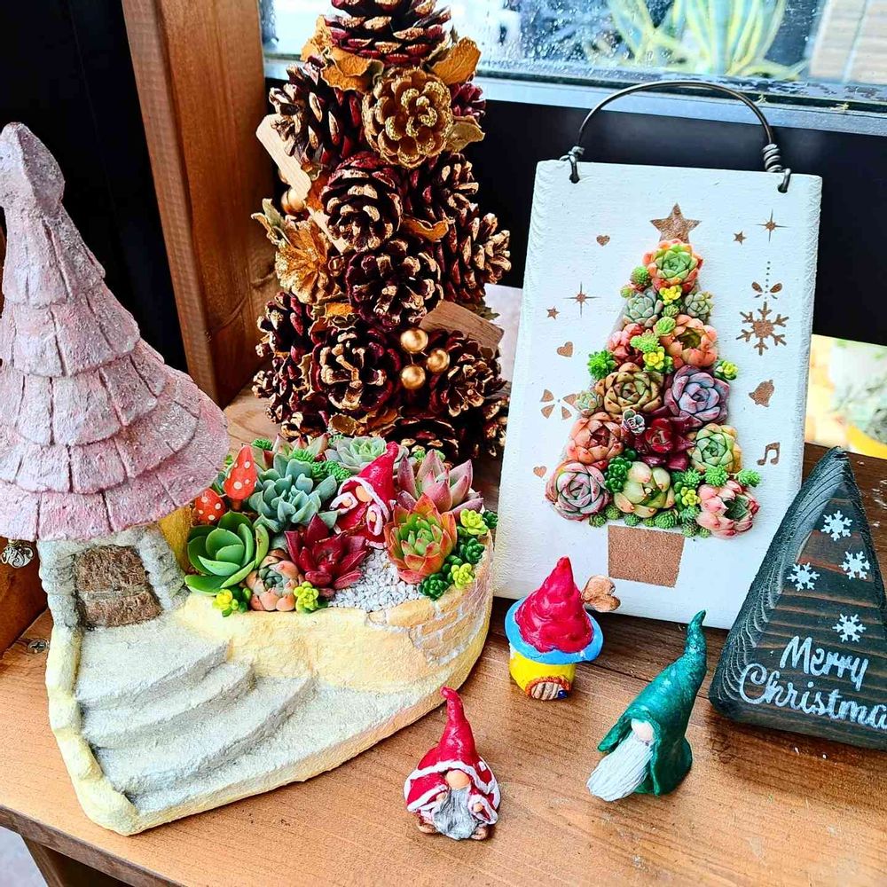 お友達が作ったモルタルハウス🏠️とクリスマスタブロー🎄に寄せ植えしました❣️