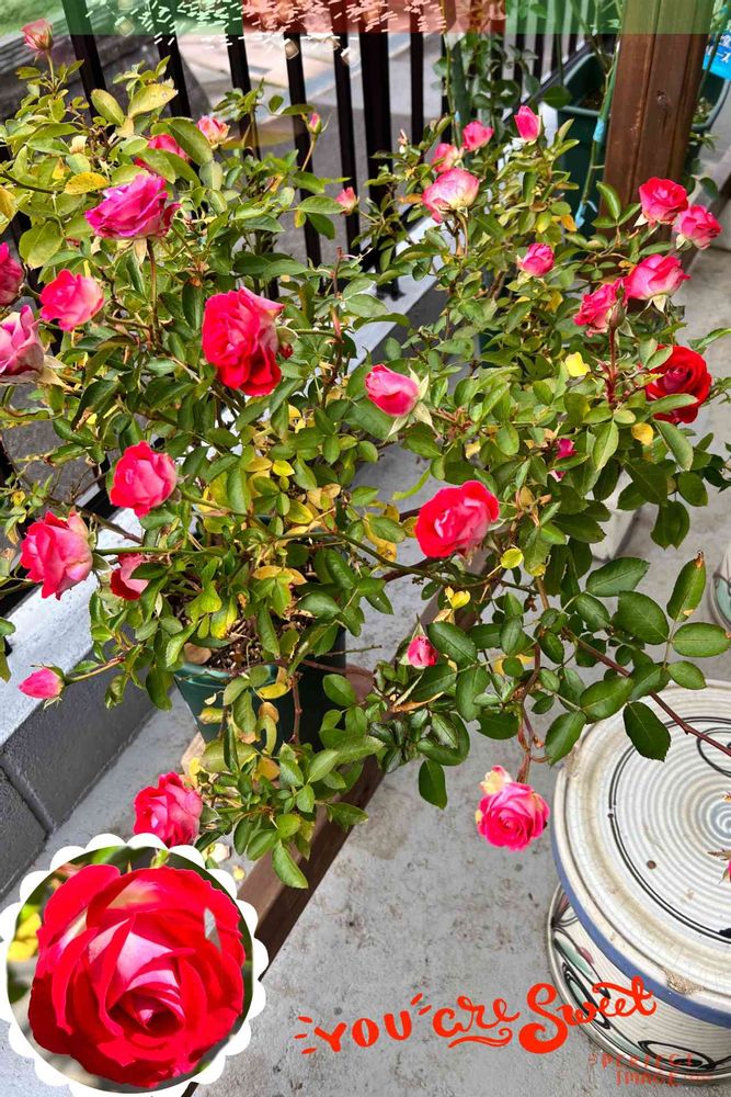 他のバラは花が咲くと短く切っていますが、このバラとコクテールさんは咲き終わると自分から花首が落ちます(掃除が大変)