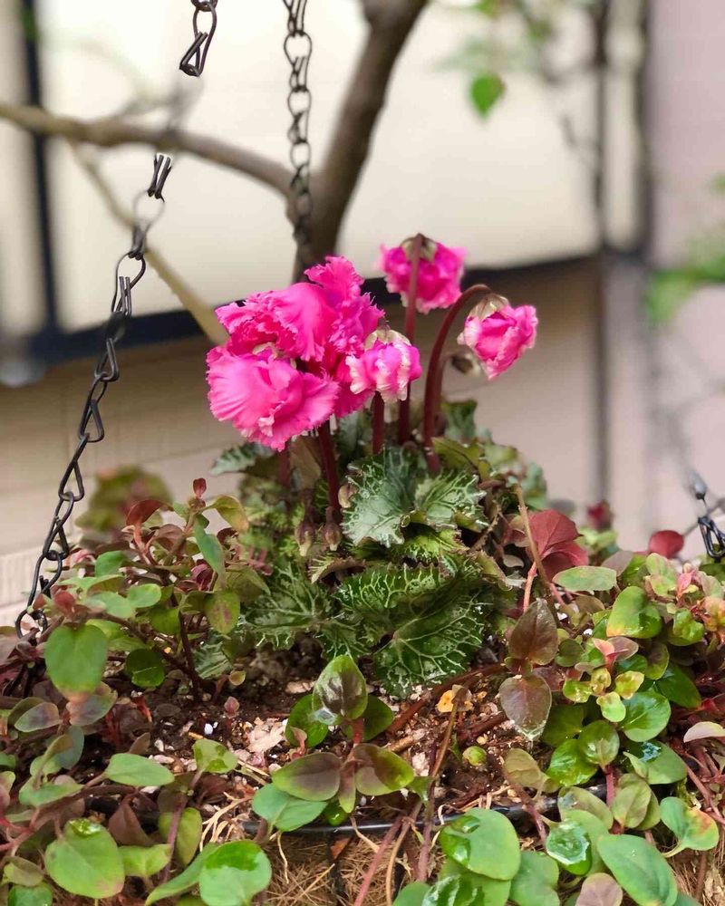 リシマキアが綺麗なので、優雅なスワン🦢の羽が羽ばたくイメージのシクラメンを入れてみました✨🥰