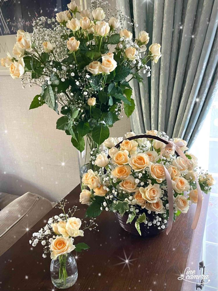 ミニ薔薇🌹ですが、花数が多いと更に豪華に見えて、本当テンション上がりました😄 旦那に感謝です🥰
