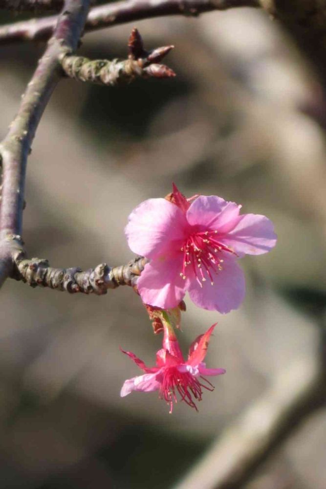 返り咲きでしょうか、カワツザクラが2輪、恥ずかしそうに咲いていました。