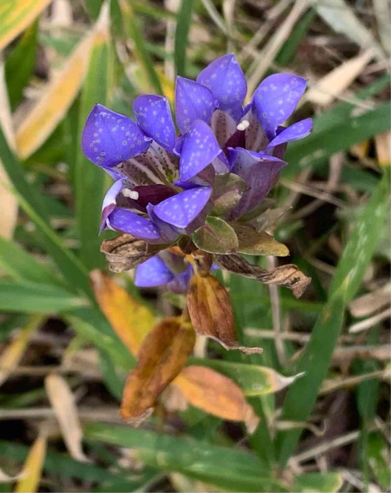 真っ青でブーケの様に集まって花咲かせてるリンドウも好きだけど、青紫に、葉っぱが山吹色とライトブラウンに染まるこの時期のリンドウが好き😆👍