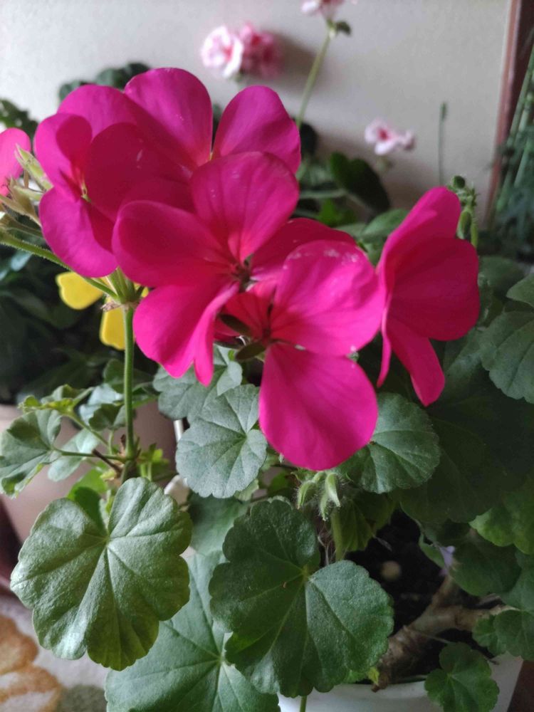 ピンクゼラニウムも白に負けずに咲きだした😍寒い🥶けど頑張れ〜✌奥には薄ピンクゼラニウムも待機中🤗