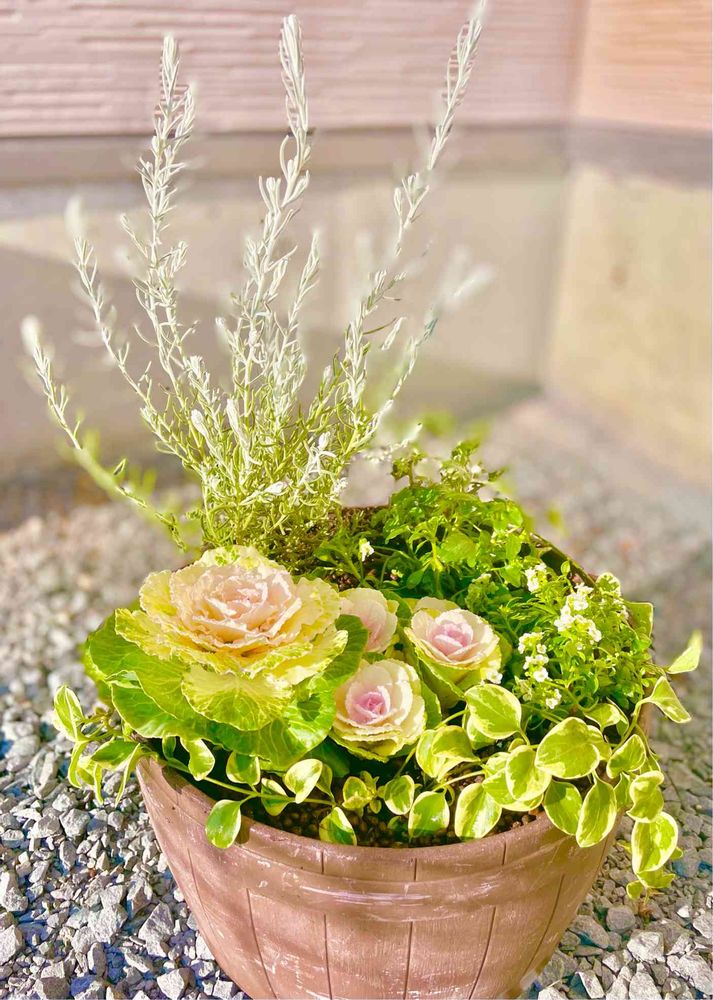 今日は仕事が午後休だったので12/2picの四角い鉢がやっぱりしっくりこなかったので丸い鉢へ引越しと少々アレンジをしてみました❣️やっぱり葉牡丹はかわいい…☺️