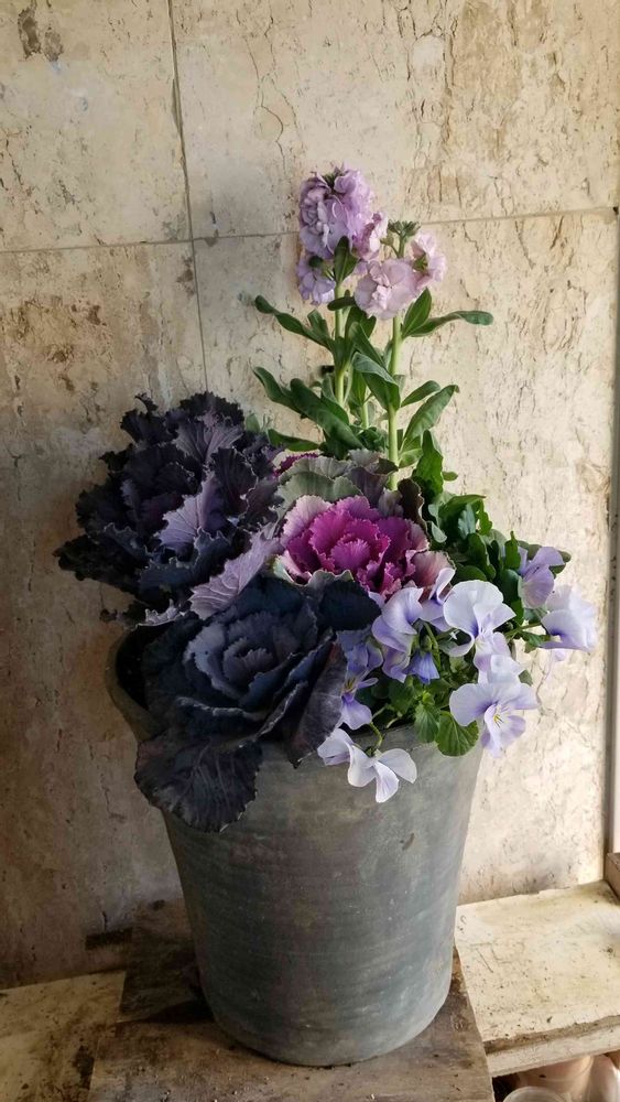 先日の花友さんとのおでかけで、葉牡丹がビックリ値段たったので買いまくってしまったので寄せ植えにしてみました😄