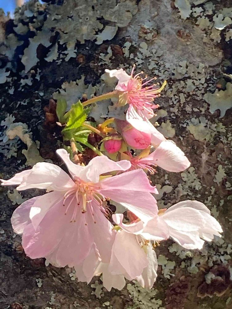 小さな十月桜はほとんど高い所に咲いていて、幹から根性で出たチビちゃんがやっとひとつ撮れました
